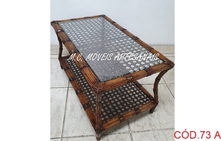 MESA DE CENTRO COM REVESTIMENTO EM RATTAN ECOLÓGICO