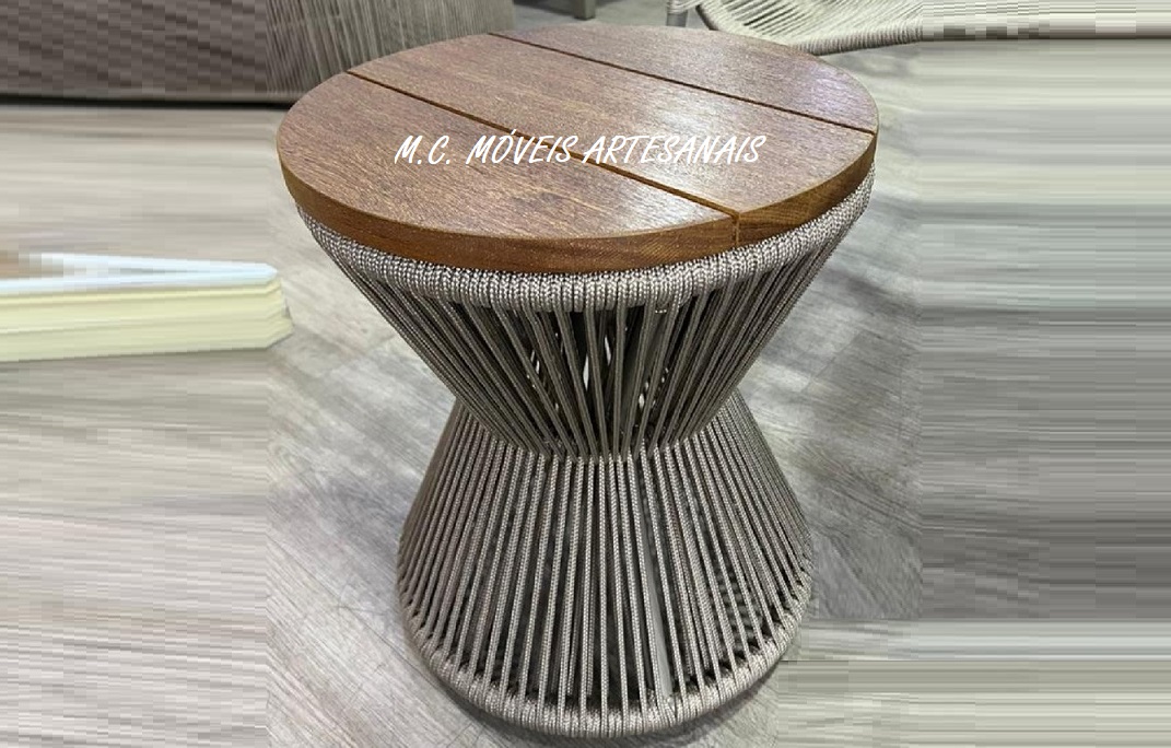 A mesa lateral piscina fabricado em corda náutica acompanha tampo em madeira e estrutura de alumínio com acabamento em pintura eletrostática, por tanto além de resistente para área externa vai deixar sua decoração diferenciada que só a corda náutica pode oferecer, medidas :