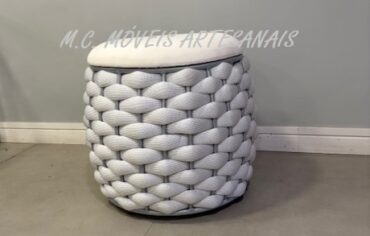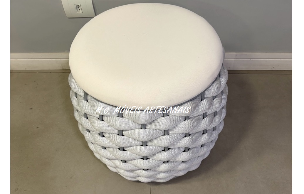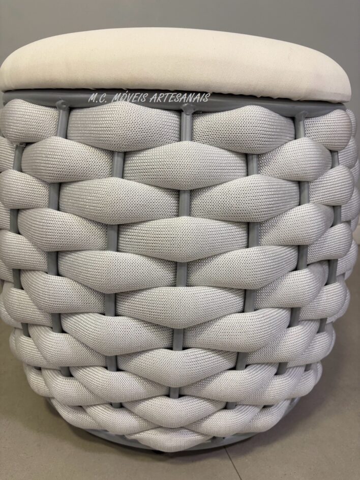 Puff Em Tricô Náutico, com estrutura de alumínio , pintura eletrostática e almofada impermeável. Puff tipo banqueta em tricô corda náutica versátil para compor sua decoração e confortável pelo seu design.
